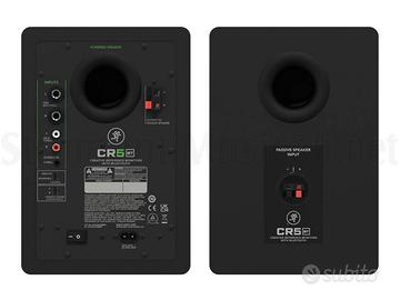 PERFETTE COME NUOVE - MONITOR DA STUDIO 5.25" BLUETOOTH ATTIVI 100W I monitor da studio autoalimentati Mackie CR5BT Creative Reference con Bluetooth combinano un suono di qualità professionale con una manopola di regolazione dei toni per passare dalla modalità studio di riferimento all'ascolto casuale o alla festa. Con una scelta di ingressi, Bluetooth e modalità commutabile da tavolo e da scaffale, i Mackie CR5BT potrebbero essere gli unici diffusori di cui avete bisogno. Utilizzate la manopola di controllo del tono per modellare il suono, a partire dalla risposta trasparente che vi aspettate dai monitor da studio. Ruotando la manopola è possibile aumentare gradualmente i bassi e rendere più brillanti gli alti, per utilizzare i CR5BT come diffusori surround per il gioco, per l'ascolto casuale o per le feste. Passate dall'interruttore di posizionamento alla modalità diffusore da tavolo e alla modalità diffusore da scaffale per ottimizzare i CR5BT in base al luogo in cui li posizionate. Utilizzate la modalità da tavolo per un ascolto ravvicinato (ad esempio in studio) e la modalità da scaffale per un ascolto a distanza (ad esempio dal divano). Accoppia smartphone, laptop e altri dispositivi Bluetooth per un suono di qualità da studio da trasmettere in modalità wireless. Collega interfacce audio, mixer, giradischi e altri dispositivi di riproduzione con connettori TRS, RCA e 3,5 mm. Passate all'ascolto silenzioso con l'uscita per cuffie integrata: basta inserire le cuffie per tagliare l'audio dei diffusori. Caratteristiche Gamma di frequenza: 50Hz - 20kHz Picco massimo SPL: 105dB Potenza totale del sistema: 100W RMS Punto di crossover: 3,0kHz Tipo di ingresso: 1/4" femmina bilanciato-sbilanciato / RCA sbilanciato / 1/8" sbilanciato Bluetooth 5.0: streaming audio Requisiti di alimentazione: 100V-240V, 50-60Hz, 110W Dimensioni (AxLxP): 262 x 175 x 236mm Peso: 6,9kg