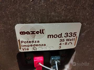 Vendo coppia di casse altoparlanti diffusori acustici Maxell 335 usate a 3 vie (woofer midrange e twetter) 8 Ohm 35 W ottime per diffusione e piccoli ambienti, funzionanti e in buono stato come da foto .Non spedisco ,contattatemi se veramente interessati per consegna a mano.