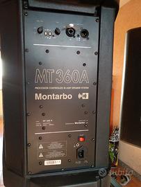 2 casse Montarbo MT-360A - casse amplificate attive 12", con supporti. Mixer Montarbo XD 69 - 2 processori incorporati, multieffetto stereo incorporato, 6 canali mono + 3 stereo/mono, con case rigido.