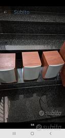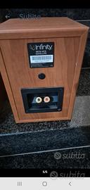 casse per sistema home theatre con sitonizzatore r 1 cassa orizzontale + 1 cassa grande + 4 casse piccole marca Infinity rivestimento effetto legno, come nuove e 100% funzionanti