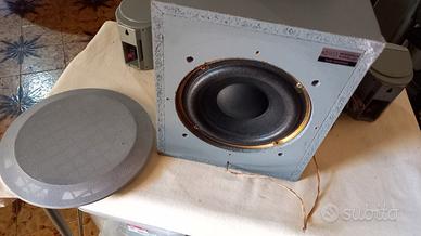 Casse Panasonic, subwoofer passivo da 50 watt con 2 satteliti da 50 watt e centrale da 50 watt, a 8 ohm, con cavi