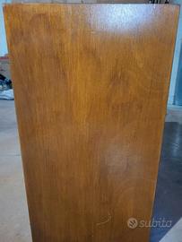 Coppia di casse passive con altoparlanti da 12", mid (di cui uno rotto ed uno mancante, ma sono facilmente sostituibili e non influscono sostanzialmente sul funzionamento delle casse) e tweeter. I coni da 12", i tweeter e l'elettronica interna non presentano difetti, mentre il legno presenta piccole imperfezioni dovute al tempo (come visibile in foto). Insieme alle casse cedo anche due scaffaletti per dischi o altro in quanto fanno parte di queste.