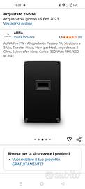 AUNA Pro PW - Altoparlante Passivo PA, Struttura a 3 Vie, Tweeter Piezo, Horn per Medi, Impedenza: 8 Ohm, Subwoofer, Nero, Carico: 300 Watt RMS/600 W max.