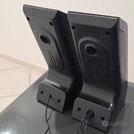 Vendo due casse acustiche CAMAC, perfette per computer o TV. Sono in ottime condizioni sebbene con piccoli graffi dovuti al normale utilizzo visibili con controluce. Le casse sono nere e compatte. Connessione con USB e jack audio. Entrate cuffie e microfono come da foto