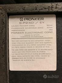Coppia di casse Pioneer per amplificare perfettamente funzionanti. Misure 19 cm larghezza 38 altezza 20 profondità. Dati tecnici in foto