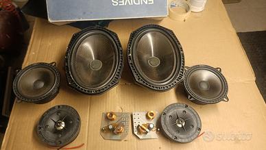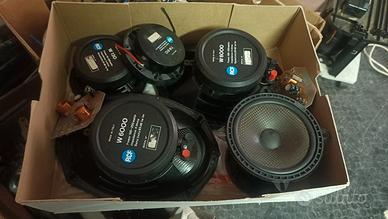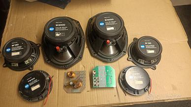 woofer e medi, in carbonio, Twitter al titanio. perfette, piu crossover. i componenti sono della rcf di alta qualità epotenza.