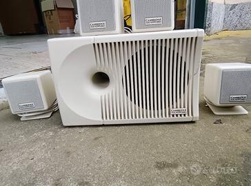 vendo a soli €10 impianto surround soundwork ideale per PC, console videogiochi e ovviamente per ascoltare musica, le casse sono funzionanti tutte con gli appositi spinotti , i cavi vanno giuntati o come avevo fatto io allungati per portare il surround in tutta la stanza