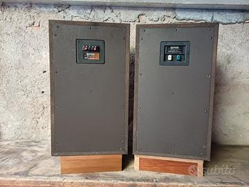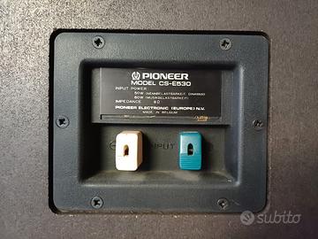 Casse vintage anni 70 Pioneer CS-E530 con base di appoggio. General Manufacturer: Pioneer Model: CS-E 530 Years of manufacture: 1973 - 1975 Made in: Japan Color: Walnut Dimensions: 570 x 330 x 304 mm (HxWxD) Weight: 16.5 kg Original price approx.: 580 DM Technical data Type: 3-way, closed Chassis: Woofer: 1x 250 mm midrange driver: 1x 120 mm Tweeter: 1x 25 mm (dome) Power handling (nominal/music): 60/? W Efficiency: 89 dB (1W/1m) Frequency response: 35 - 20,000 Hz Transitional ranges: 800 / 4,000 Hz Impedance: 8 Ohm Special Features Removable front SOLO RITIRO a MANO NON effettuo SPEDIZIONE Trattasi di vendita tra privati con fomula visto e piaciuto