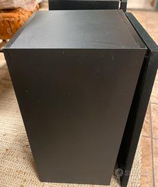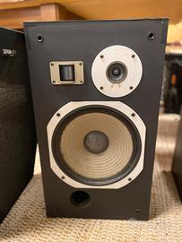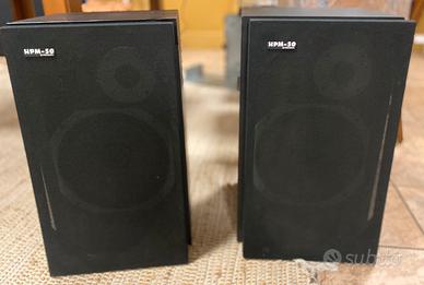 Tutti i componenti originali tenute bene chi le conosce sa di cosa stiamo parlando Disponibile spedizione o consegna a mano Il Pioneer HPM-50 è un sistema bass reflex a 3 vie, da scaffale, con woofer/midrange da 25 cm in fibra di carbonio sospeso sul bordo in schiuma di poliuretano. Il tweeter, anch'esso in fibra di carbonio, è stato appositamente progettato per gestire escursioni lunghe (e ad alto volume) su un'ampia gamma di frequenze (da 2,5 a 12 kHz). Il super tweeter HPM offre la stessa efficiente e ampia dispersione delle alte frequenze fino a 25.000 Hz presente nei sistemi Pioneer più costosi. Tutti i driver sono montati in telai di alluminio pressofuso. Specifiche Tipologia: sistema di altoparlanti a 3 vie e 3 driver Risposta in frequenza: da 35 Hz a 25 kHz Potenza gestibile: 80 W Frequenza di crossover: 2500, 12000 Hz Impedenza: 8Ω Sensibilità: 91 dB Bassi: 1 cono da 250 mm Tweeter: 1 cono da 45 mm Super Tweeter: 1 x HPM ad alto polimero Cassa: bass reflex Dimensioni: 570 x 325 x 317 mm Peso: 13 kg Anno: 1979