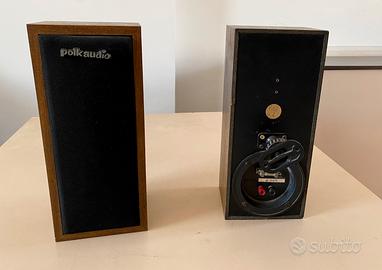 Coppia casse Polk Audio di metà anni ‘90 utilizzate come posteriori in un impianto Dolby Surround. Col tempo la plastica che circonda uno degli altoparlanti si è consumata e va sostituita in entrambe le casse. Per il resto funzionano perfettamente.