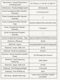 coppia di casse polk audio tsx 330t Potenza 160 w imp. 8 ohm 90 db, misura 16.5 cm (6.5inch). Per la scheda tecnica dettagliata vedi foto allegata. Sonorità eccelente casse di qualità, di recente acquisto, costavano circa 500 euro di listino.