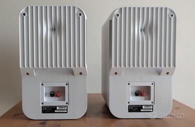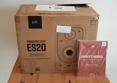 Tenute con grande cura, mai a volumi alti (vivo in un condominio) e in ambiente non fumatori. Funzionano perfettamente. Hanno recensioni eccezionali, vedi Audio Science Review per esempio. Il grande vantaggio di questi diffusori, oltre alla qualita' del suono, e' il fatto che in stanze medio-piccole non c'e' bisogno di un subwwofer, il woofer delle Polk ES20 e'piu' che sufficiente! Le vendo per passaggio a tipologia diversa (Acoustic Energy AE1 attive). Ci sono due micro imperfezioni estetiche, e per micro intendo che proprio devi andarle a cercare, evidenziate dalle foto 5 e 6. Quella della foto 6 e' un difetto di fabbrica. Bianche si trovano su Amazon a 389€ (aprile 2026) Dimensioni: 38x22x35 Peso: 7.7 kg l'una Spedizione con Poste Italiane Espresso €20