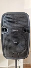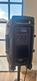 Due casse audio a corrente entrambe dotate di piantana. Le casse sono portatili e sono dotate di bluetooth e radio. Insieme alle casse aggiungiamo il cavo in/out per collegarle insieme con prolunga di 10m. Le casse facevano parte di una scuola di ballo, sono state usate per pochi mesi e sono in ottime condizioni. Prezzo leggermente trattabile.