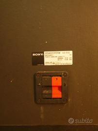 Casse SONY a 3 vie a sospensione pneumatica di colore marrone con griglia in tela nera.