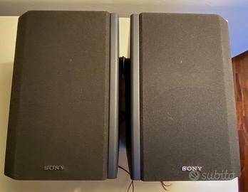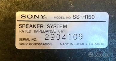 Come da foto casse da mensola marca Sony modello SS-H150 Specifiche: sistema a 3 vie: Woofer 13 cm -diametro - Tweeter 5 cm -diametro Super tweeter 2 cm -diametro cone type - Bass Reflex - Impedenza 6 ohm Range di frequenza 60 Hz - 20 kHz - Sensitivity 88 dB /w/m Dimensioni: 195 x 285 x 230 mm. - Peso 3 Kg per speaker.