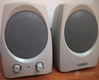 Vendo coppia di casse audio Creative SBS35, progettate da Cambridge SoundWorks. Ideali per PC, laptop o dispositivi con uscita jack da 3,5mm. Collegamento semplice: un cavo audio per l'ingresso, l'altro per il collegamento tra le due casse (sinistra e destra). Alimentazione tramite presa di corrente (non USB). Caratteristiche tecniche: Modello: Creative SBS35 Tipo: Sistema stereo 2.0 Ingressi: jack audio da 3,5 mm Progettate da Cambridge SoundWorks Dimensioni compatte, ottime anche per scrivanie con poco spazio. Dimensioni: 9,5 cm L x 10 cm P x 14,5 cm