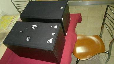 Coppia di diffusori acustici JBL! TLX 50 anni 90 circa del 1996 - 1997 inc. Northridge, CA 91329 USA Fatte in danimarca con altoparlanti fatti in Francia Mobile legno MDF con rifinitura in rovere nero con venature Altoparlanti a 3 vie compostii da tre altoparlanti JBL made in France di cui: - tweeter JBL A0101A - midrange JBL A0102B - woofer JBL A0108A + woofer posteriore passivo Bass reflex Potenza 100w RSM Impedenza 8 ohms Risposta in frequenza 70 Hz - 20 kHz Sensibilità (1W/1m) 88,5 dB Frequenze crossover 700 Hz / 3,5 kHz Dimensioni: larghezza 27 cm profondità 28 cm altezza 48 cm peso di ognuna: 9,8 kg. Le griglie o frontalini davanti hanno la stoffa abbastanza disastrata, bucata, lacerata, con rimasugli di colla perchè vi avevo messo adesivi. Alcuni piedini dei frontalini suddetti sono rotti. Alcune crepe superficiali nel legno delle casse. I coni necessitano refoaming cioè la sostituzione delle guarnizioni di schiuma che nei decenni si sgretolano. Con cifre esigue vendono online kit con colla inclusa e riuscirete a montare le guarnizioni da soli, non serve spendere soldi da un tecnico: se hai dimestichezza su Youtube è pieno di tutorial che insegnano a sostituire le guarnizioni. Ma se proprio dovete, portiatele da un tecnico ma vi suggerisco di comprarvi le guarnizioni per conto vostro senò il tecnico ve le farà pagare almeno il doppio. L'ultima foto è solo una locandina pubblicitaria per farvi vedere i dati tecnici: non è incluso quel foglio. . Guarda sempre la tua cartella SPAM per possibili risposte perse Guarda anche i miei altri annunci TEL. 3716299837