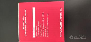 Vendo casse stereo Mars Gaming MAS0, compatte e potenti, ideali per PC, notebook e gaming.