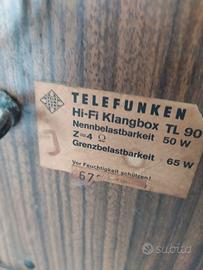 Casse Telefunken anni 70, ottimo suono, dimensioni 75x36x30. In buone condizioni. Ritiro Napoli Capodichino. € 170