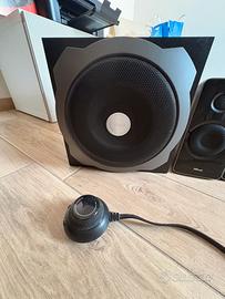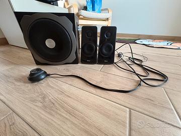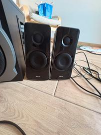 Vendo sistema audio Trust 2.1 composto da: •🔊 2 casse stereo •🔊 Subwoofer potente con regolazione bassi •🎚️ Controllo volume esterno con manopola (molto comodo da usare sulla scrivania) ✅ Tutto perfettamente funzionante, testato recentemente ✅ Audio pulito e bassi ben presenti ✅ Ideale per PC, laptop, TV o console Il sistema permette di: •Regolare il volume direttamente dal controller esterno •Regolare i bassi dal subwoofer •Ottenere un suono molto più pieno rispetto alle casse standard 💡 Ottimo per musica, film e gaming 📦 Condizioni: buone (normali segni d’uso, nulla che influisca sul funzionamento)