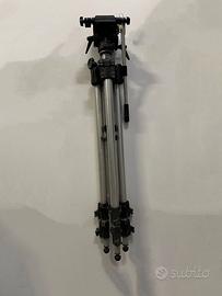 CAVALLETTO VIDEO PROFESSIONALE MANFROTTO, con piastra, completo di blocco sicurezza delle gambe, adatto anche per camere pesanti.