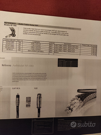 Vendesi in condizioni pari al nuovo cavi di segnale RCA di alto livello Reference Audiokabel modello NF1302 lunghezza 0,6 m. - Cavo audio High End con nuova tecnologia GAP per interrompere le correnti indotte all'Interno della protezione. Conduttori DSS e una nuova doppia costruzione simmetrica dotata di tecnologia PETS permette una qualità sonora eccezionale. Prezzo di listino euro 350 Spese di spedizione a carico dell'acquirente. Accetto contatti anche tramite WhatsApp.