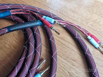 Set 2 cavi audio in rame OFC schermato con connettori a banana placcati oro. Lunghezza 3 metri.