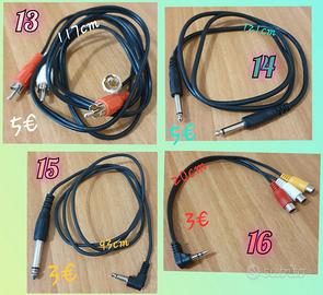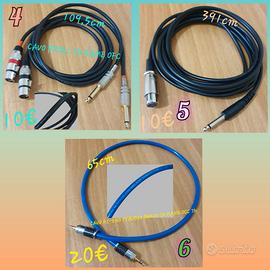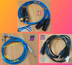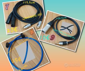 Vendo cavi audio professionali, le misure nelle foto sono state prese misurando solo la lunghezza dei cavi e non da connettore all'altro. Ogni cavo ha in corrispondenza un numero come si può vedere in foto, il prezzo, misura e tipo di rame, quindi basta scrivermi un messaggio con i numeri in corrispondenza che interessano e vi mando l'offerta con il calcolo totale, con più cavi faccio lo sconto e per ogni cavo un adattatore in omaggio a scelta tra quelli nell'ultima foto. Quindi in sintesi, dove non c'è scritto il tipo di rame sono cavi standard, dove c'è scritto rame OFC e roba di alta qualità, dove c'è scritto OCC 7N e la qualità puramente assoluta audiofila.