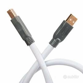 Cavo USB tipo A-B, doppia schermatura per ridurre interferenza da RF, flessibile. Alta capacità di rejezione. PE- insulated. 90 ohm veri di impedenza. Connettori schermati a placcato oro 24 K. Data transfer 1200 Mbps sino a 16 metri.
