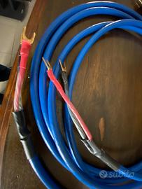 Cavi di potenza ( collegamento diffusori ) da 3 metri con forcelle da un lato e banane dall'altro. I cavi funzionano bene, non sono presenti gli imballi originali e non sono biwiring, come visionabili da foto. Non accetto tutto subito, sono visionabili presso la mia residenza. Grazie