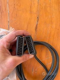 Vendo cavi SCART per collegamenti audio/video (TV, decoder, console vintage). 2 cavi disponibili 1 nuovo ancora nella confezione 1 usato ma perfettamente funzionante Ideali per TV vecchie, decoder o console retro.