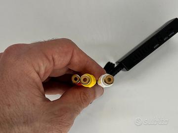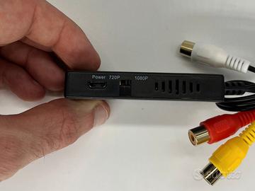 Questo convertitore da AV a HDMI consente di collegare dispositivi legacy utilizzando l'uscita video composita ai moderni display HDMI. Include più cavi per una facile connettività, con connettori compositi (giallo, rosso, bianco) e un cavo USB per l'alimentazione. Il design compatto garantisce la portabilità, rendendolo adatto per viaggi o uso domestico. Ideale per coloro che desiderano collegare vecchie console di gioco, lettori DVD o fotocamere a una nuova TV. Il prodotto offre una soluzione semplice per migliorare la tua esperienza visiva.