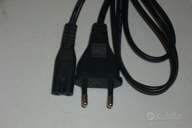 Causa inutilizzo per cessata attività vendo fondo di magazzino, 5 cavi di alimentazione con spina Italiana 2 poli 10A e connettori terminale C7, Tipo cavo: H03 VVH2-F 2G Sezione cavo: 0.75 mmq. Lunghezza: m. 1,8 Colore: nero, come da foto allegate,