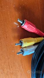 Connettori colorati per collegamento semplice e immediato (audio destro, audio sinistro, video composito).