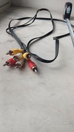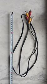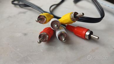 cavo composito Audio/Video RCAutilizzato per collegare dispositivi come vecchi lettori DVD, videoregistratori o console di gioco a televisori o monitor. Ecco le sue caratteristiche principali: Connettori:Tre spine maschio RCA su ciascuna estremità. Codifica colori:Giallo per il segnale video, bianco per l'audio sinistro e rosso per l'audio destro. Funzione:Trasporta segnali audio e video analogici a bassa tensione. Lunghezza totale cm. 140. Ottime condizioni generali, nuove, conservati nel cassetto da anni. disponibile per altre informazioni