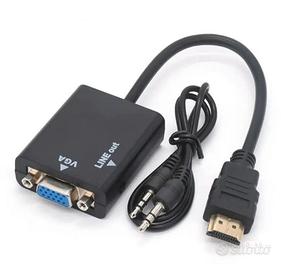 ADATTATORE E CAVO DA VGA MASCHIO A HDMI FEMMINA ADATTATORE CONVERTITORE AUDIO VIDEO USB PC TV.