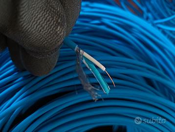 Matassa da 400mt (eventualmente tagliabile su richiesta) di cavo video per impianti di videosorveglianza, telecamere analogiche e digitali con uscita video su coassiale, micro coassiale, lszh colore blu schermato. Prezzo 0,15 al metro (60 euro per tutta la matassa da 400mt).