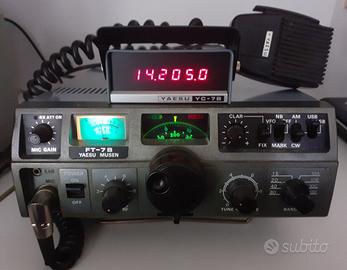 - Yaesu Musen FT-7B Solid State con AM -USB-LSB-CW 50/100 watt di uscita con copertura della banda di 10 m suddivisa in quattro segmenti da 500 kHz. In vendita a 400€ già fatto testare e revisionare in Lab.Prof.le. La sua potenza in uscita è regolabile da 5 a 50 W da un amplificatore di potenza integrato da 50 W a due transistor finali 2SC2099. È inoltre dotato di un noise blanker e attenuatore RF. A tuttoggi, dopo più di 35 anni dal lancio, gli FT-7 (B) sono ancora usati come ricetrasmettitore secondario o di riserva. Volendo, ma in vendita separatamente a 150€, è disponibile anche il suo Frequenzimetro originale YC-7B x Yaesu/Sommerkamp FT-7B ( Venduti separatamente a richiesta anche vari Quarzi Originali sempre per Yaesu/Sommerkamp FT-7B)