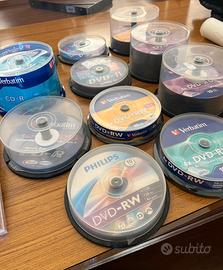 Cd/dvd vergini di vario tipo come da foto + 3 pacchetti di custodie cd/dvd + casse (non più in garanzia)