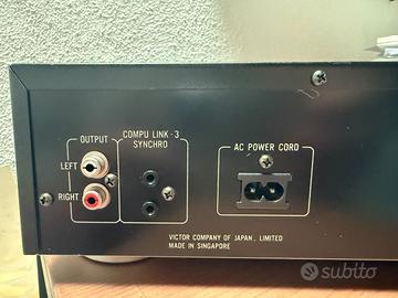 Vendo cd player JVC XL. V120 come nuovo perchè seconda macchina di un impianto già completo Technical data: Channels: 2 channels (stereo) Frequency range: 4 - 20,000 Hz Dynamic range: 95 dB, (1 Khz) Signal to noise ratio: 100 dB (at digital 0) Harmonic distortion: 0.006 % (1 khz) Synchronisation fluctuation: not measurable Output: 2 x Cinch jacks Headphones: no Output level: 2.0 V rms (full scale) 32 program steps Remote control: no (only via system remote control, Compu-Link)