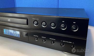 Il TEAC CD-P1260 è un lettore CD che incarna perfettamente la filosofia "no-frills" (senza fronzoli) dell'alta fedeltà. È stato progettato per chi cerca un apparecchio solido, affidabile e facile da usare, ideale per chi ha una vasta collezione di dischi fisici e non vuole complicarsi la vita con menu complessi, per questo esemplare non dispongo del telecomando, ma a meno di 10 euro è possibile gestirlo con un compatibile. Il design è quello classico dei componenti hi-fi anni 2000: sobrio, funzionale e robusto. Pannello Frontale: Pulito, con un display LCD centrale retroilluminato che mostra chiaramente il numero della traccia e il tempo trascorso. Meccanica di Caricamento: Il cassettino è posizionato al centro per ridurre le vibrazioni e migliorare il bilanciamento durante la rotazione del disco. Nonostante la sua semplicità, il P1260 offre una buona versatilità per quanto riguarda i supporti ottici: •Supporti supportati: CD originali, CD-R e CD-RW. •Formati Audio: Oltre al classico formato CD-Audio, è in grado di leggere file MP3, permettendoti di ascoltare compilation masterizzate con centinaia di brani. •Conversione D/A: Monta un convertitore digitale-analogico (DAC) a 1 bit con sovracampionamento 8x, che garantisce un suono pulito e una distorsione armonica molto bassa. L'apparecchio è pensato per essere collegato a un amplificatore integrato o a un ricevitore: •Uscite: Dispone di un'uscita analogica RCA (L+R) standard. •Uscita Cuffie: Presente sul pannello frontale con jack da 6.3mm e controllo del volume dedicato, un tocco molto apprezzato per l'ascolto privato senza accendere l'intero impianto. •Funzioni di Riproduzione: Programmazione tracce (fino a 16), riproduzione casuale (shuffle) e ripetizione. DISPONIBILE A SCAMBI PERMUTE E SPEDIZIONI