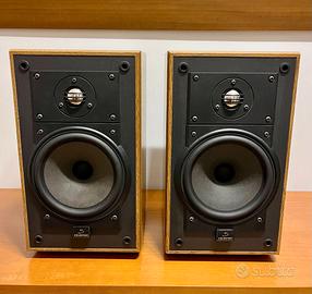 Coppia Diffussori Celestion Mod. 5 MKII perfettamente funzionanti., telo mascherine frontali nuovo. Le Celestion 5 sono diffusori entry-level molto apprezzati che offrono un'esperienza sonora sorprendentemente matura e ben definita, ideali per chi cerca qualità audio senza spendere una fortuna. Description: Method : 2-Way, 2-Speaker, Airtight Type, Bookshelf Type Units Used : For low band : 17 cm cone type For high-pass : 2.5 cm dome type Frequency characteristic : 75 Hz to 20 kHz ± 3 dB (55 Hz -6dB) Output sound pressure level : 88dB SPL/W/m Impedance : 8 Ω Maximum allowable input : 120W Recommended amplifier output : 10W ~ 90W RMS Crossover frequency : 4kHz Cabinet internal volume : 12L External dimensions : Width 206x Height 350x Depth 250 mm Weight : 4.7kg