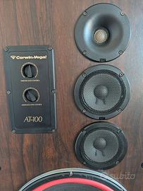Vendo coppia di diffusori iconici americani Cerwin Vega AT-100 (note anche come AT-15). Sono i classici monitor da pavimento "Old School": alta efficienza, impatto fisico devastante e il leggendario woofer da 38 cm (15 pollici).