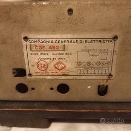 Vendo radio a valvole CGE 450 anni 30 completa del suo pannello posteriore e cavo d'alimentazione originale. Preferisco consegna a mano.