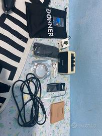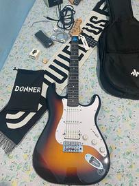 🎸[manico in acero canadese con profilo a "C"] Il bundle Donner DST-100 per chitarra elettrica per principianti utilizza tastiera in legno Purpleheart, corpo solido in pioppo, manico in acero canadese con profilo a "C", design classico, vestibilità comoda.