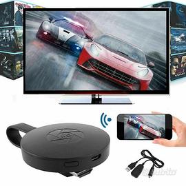 Questo speciale dispositivo COMPATIBILE Google è capace di proiettare telefoni cellulari/tablet/notebook ad un altro grande schermo con interfaccia hdmi (come ad esempio, hdtv, Monitor o un proiettore, ecc) tramite connessione wi-fi, attraverso diversi standard, come miracast, dlna, airplay ecc.