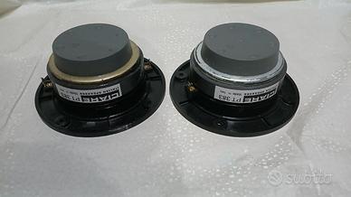 Eccellente tweeter del famoso marchio italiano Ciare, caratterizzato da una eccellente efficienza abbinata ad una notevole tenuta in potenza grazie alla bobina da ben 38mm. Timbrica aperta e dettagliata, ottima per realizzare un diffusore ad alta efficienza da abbinare ad un ampli valvolare. Entrambi i trasduttori sono perfettamente funzionanti (ho un video che lo attesta) ed in ottime condizioni estetiche, la calotta posteriore è stata ridotta perchè sono stati usati solo qualche ora su un impianto hi-fi car dimodtrstivo. Tale modifica non ha cambiato la timbrica ma ha solo innalzato leggermente la frequenza di risonanza, che è passata da 1KHz a 1,2KHz. Trattasi di vendita fra privati senza garanzia e restituzione, riceverete i 2 trasduttori come visibili nelle foto.