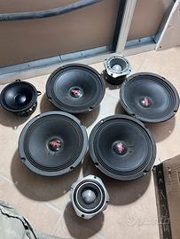 Impianto composto da 4 casse + 2 driver, mai fatto gare e stressato eccessivamente, perfettamente funzionanti… ciare hertz spl audio sp