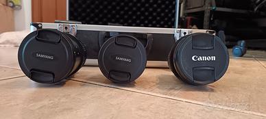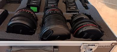 Dispongo di lenti con attacco EF versione CINE della samyang con focale 35mm T1. 5 e 85mm T1. 5,, immagini eccellenti, specialmente se abbinati a fotocamere di buona fattura, ottime per ottenere una visione cinematografica. Usate 4 volte, tenute in modo maniacale. Vendo per passaggio a ZEISS