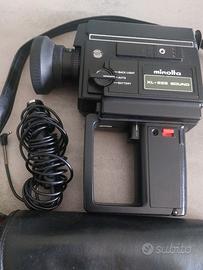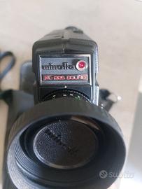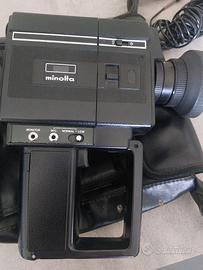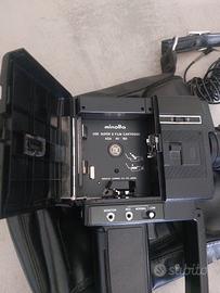 Cinepresa Minolta con microfono originale e la sua borsa in pelle nera per intenditori